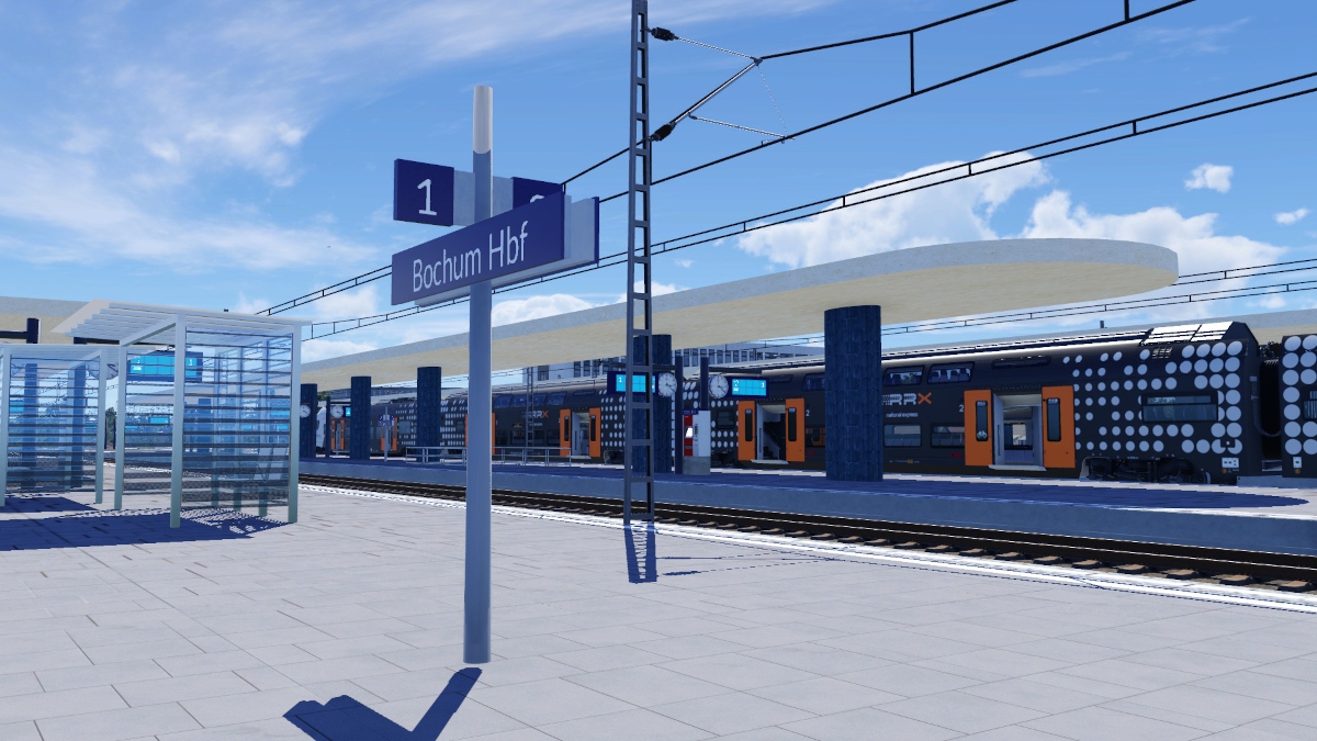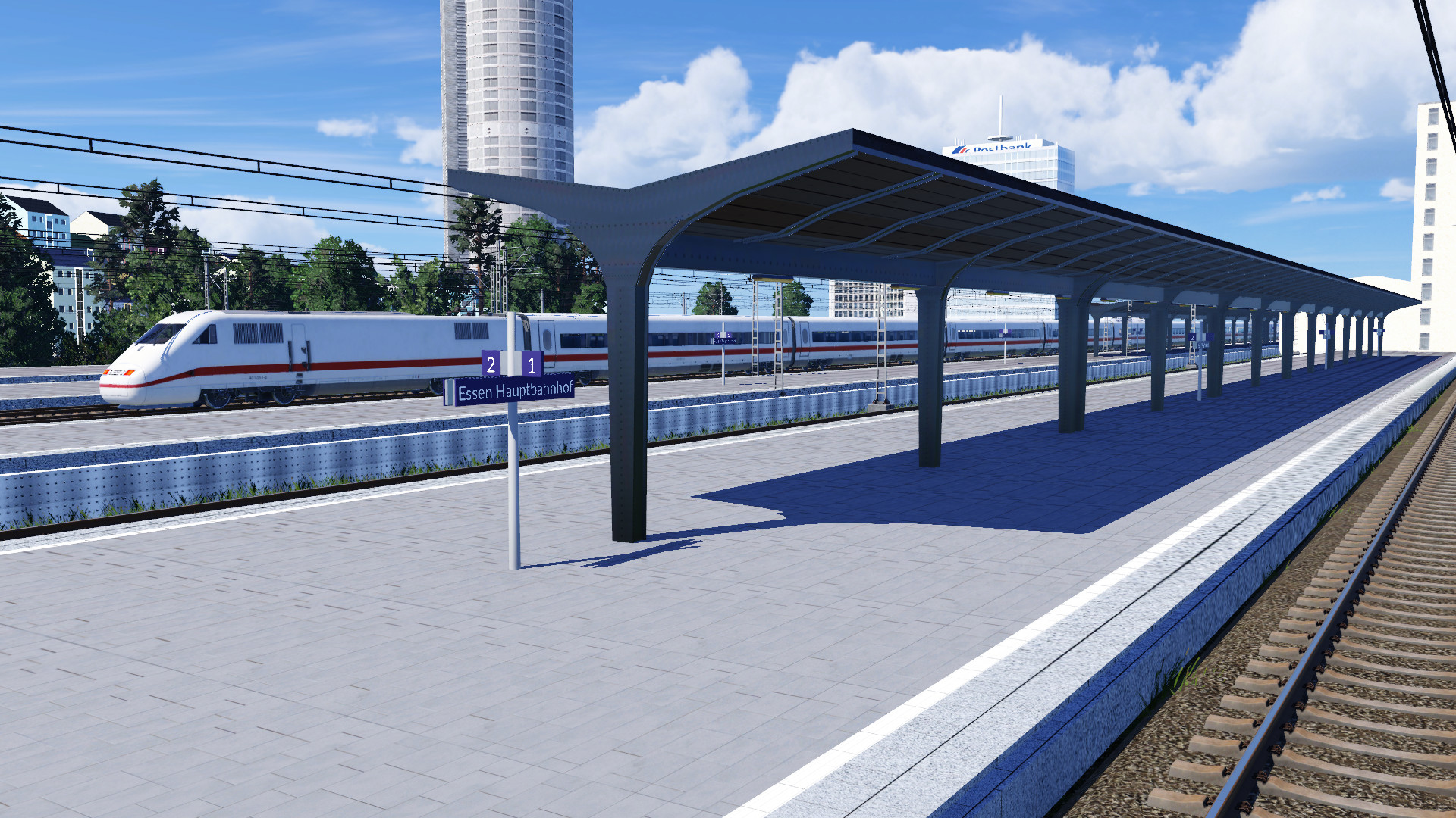 Er ist fertiggestellt. Nach einigen Stunden Bauzeit und Skripterei, ist der Essener Hauptbahnhof vollständig. Mit 11 Terminals an 5 Bahnsteigen, ist er der größte Bahnhof auf meiner Map. Auf 580 Meter erstreckt sich der Komplex auf zwei Etagen.
